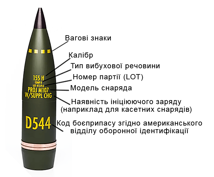 Маркування та написи на снарядах